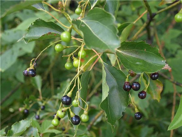 Large spreading tree to 20m. Bark greyish with prominent vertical cracks on trunk. Young leaves and stems with a reddish tinge. Mature leaves green above, dull green below, strongly scented of camphor when crushed. Small pale flowers. Fruit a 1cm berry, green, ageing to black.