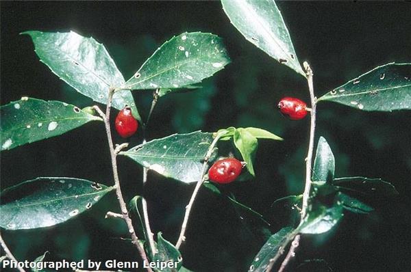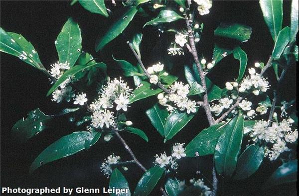 Shrub/subShrub/undershrub to 7 m high. Flowers; Cream, June to September. Fruit; a shiny succulent drupe, deep red, oval 8-10 mm long. January to February