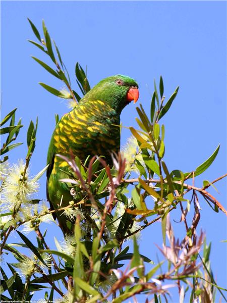 Common in lowland open forests and woodlands. Similar in size, call and habitat preference to Rainbow Lorikeet