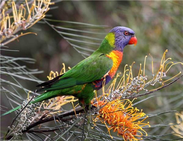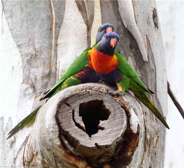 Has suffered from loss of native habitat but gained from planting of nectar-rich trees and shrubs in towns. A tourist attraction at Currumbin Sanctuary.
