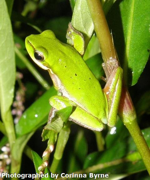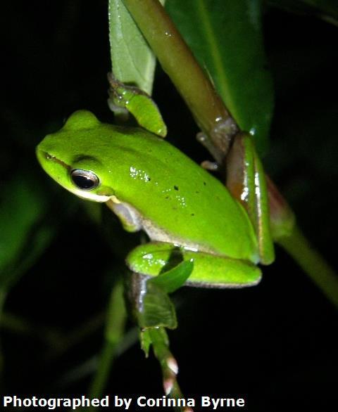 This frog thrives around farm dams wherever there are fringing reeds. It often lives in suburban gardens, sheltering among the leaves of shrubs and calling loudly after rain.
